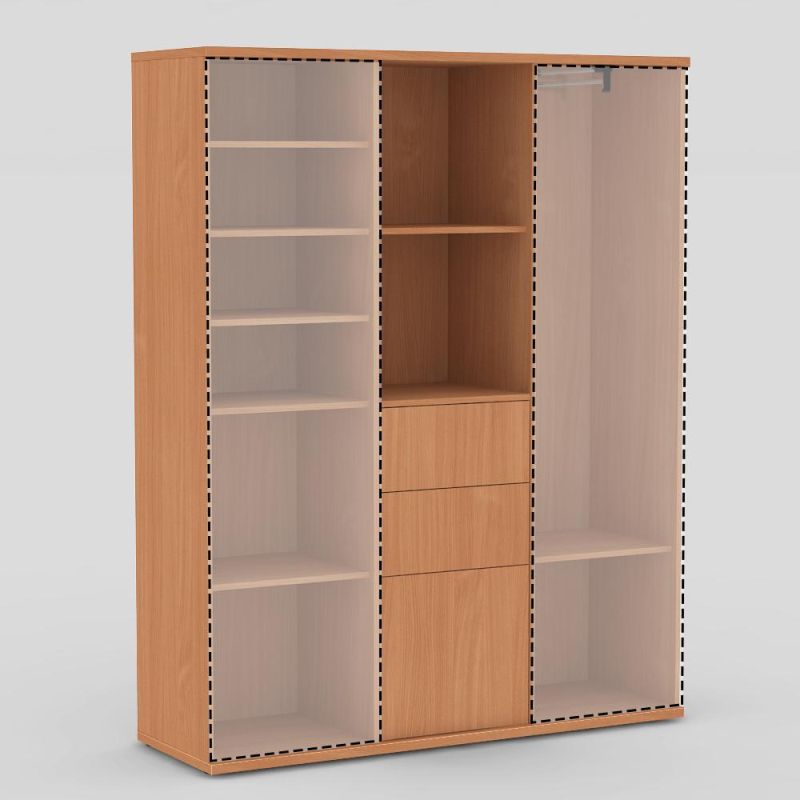 Trojdielna skriňa kombinovaná, 2x posuvné dvierka
