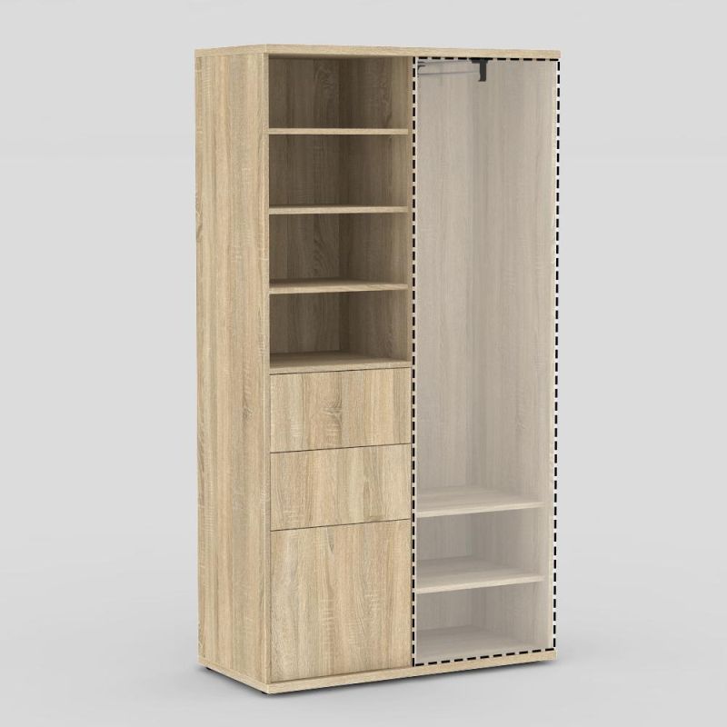 Skrinka má prípravu na 10 políc. V základnej výbave je 5 políc, jedna vešiaková tyč a tri zásuvky