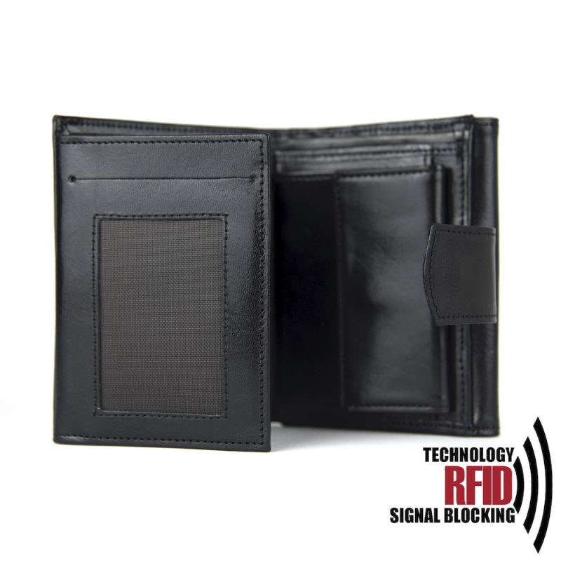 Kožená RFID peňaženka vybavená blokáciou RFID / NFC, čierna farba č.8287