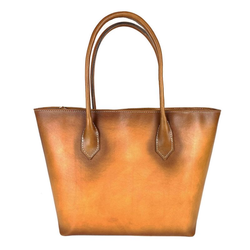 Kožená dámska kabelka SHOPPER vyrobená na Slovensku z pravej hovädzej triesločinenej usne z Toskánska. Elegantný taliansky dizajn spája praktickosť s nadčasovým štýlom a ručné tamponovanie spolu s tieňovaním okrajov zaručujú jedinečnosť a originálny vzhľad každej kabelky. Každý ručne tieňovaný výrobok je zároveň umeleckým dielom.