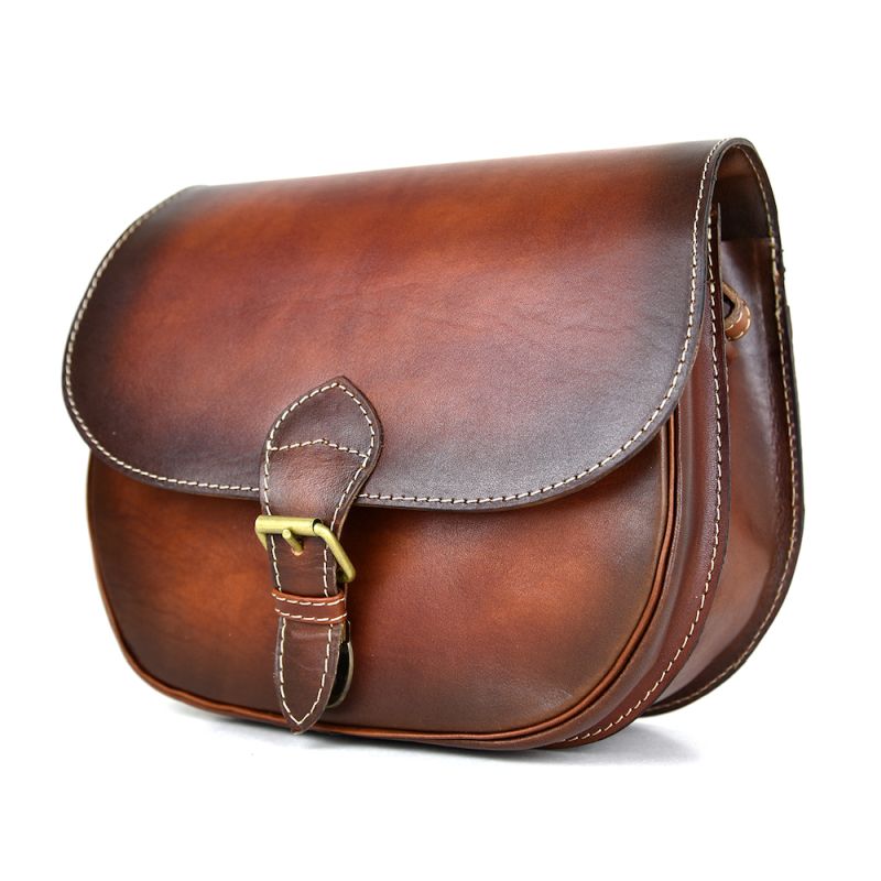 Módna kožená kabelka 7403 v Cigaro farbe, ručne tieňovaná