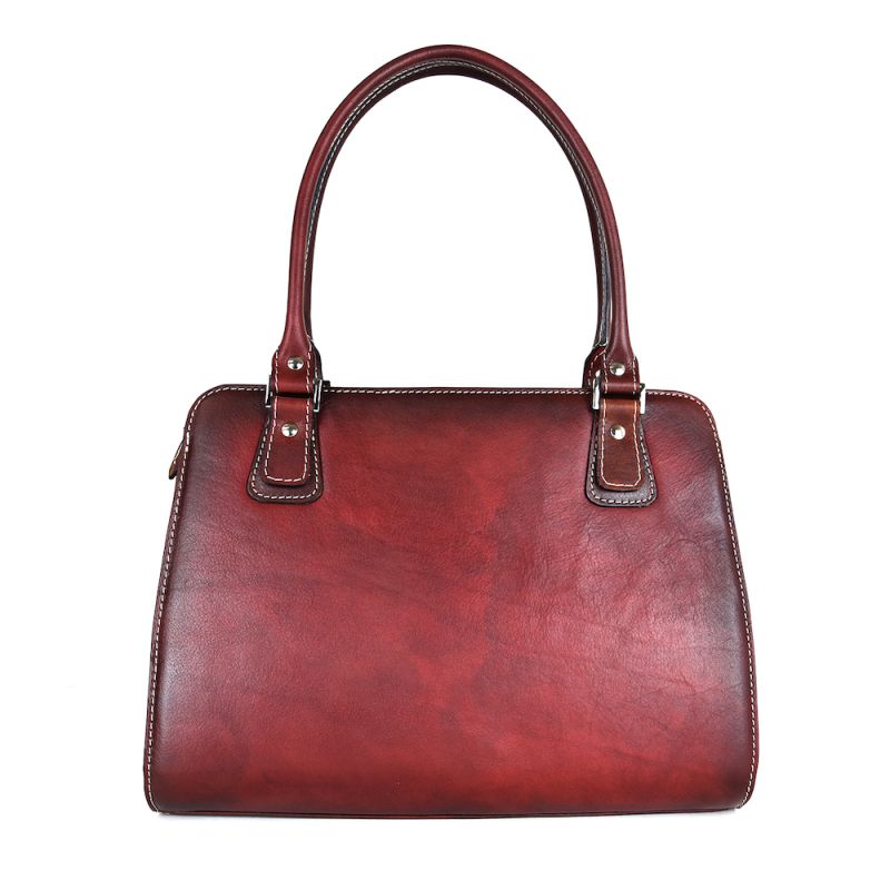 Módna kožená kabelka 8614 ručne tamponovaná a tieňovaná v bordovej farbe