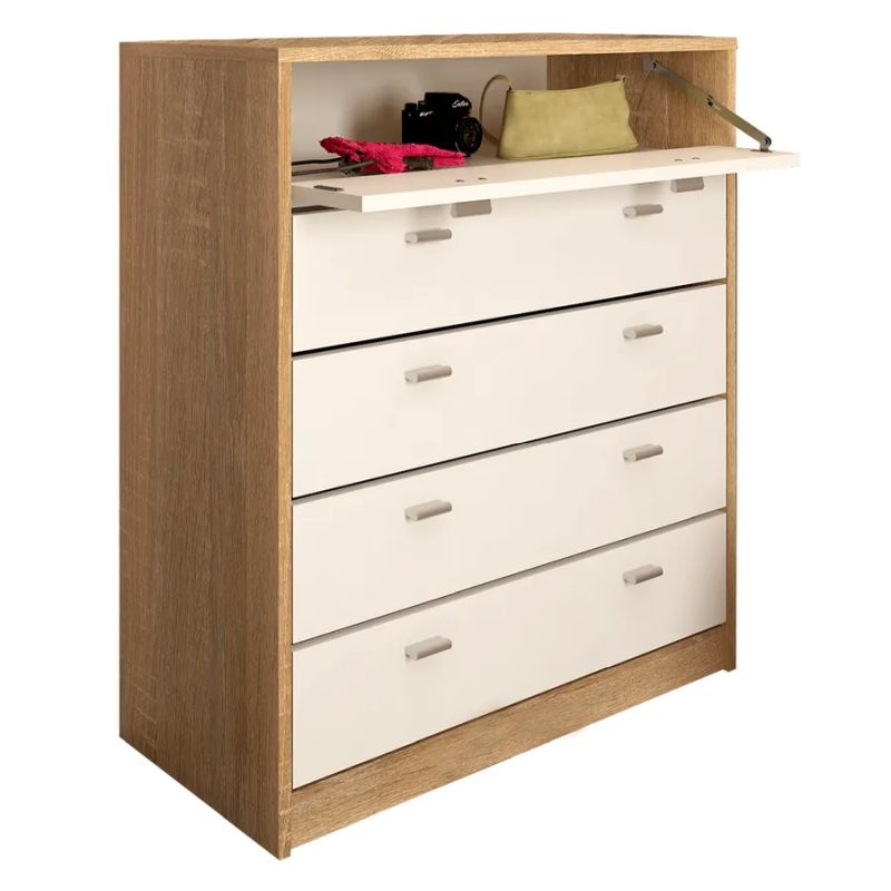 Vyrobený z kvalitnej drevotriesky DTD laminovanej v prevedení dub sonoma/biela