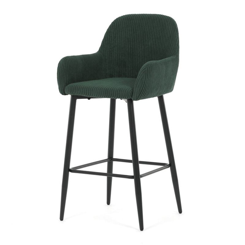 Táto barová stolička s opierkami ponúka výnimočný komfort vďaka mäkkému manšestrovému poťahu, ktorý je príjemný na dotyk a zároveň odolný pri každodennom používaní. Ergonomicky tvarované operadlo spolu s integrovanými podrúčkami podporujú správne držanie tela a zabezpečujú pohodlné sedenie aj počas dlhších chvíľ pri stole či bare.
