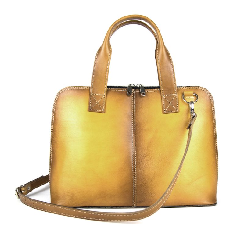 Dámska kožená kabela vhodná na formát A4, ručne tieňovaná, tmavo žltá farbaSKLADOM196,90 €/ ks160,08 € bez DPH