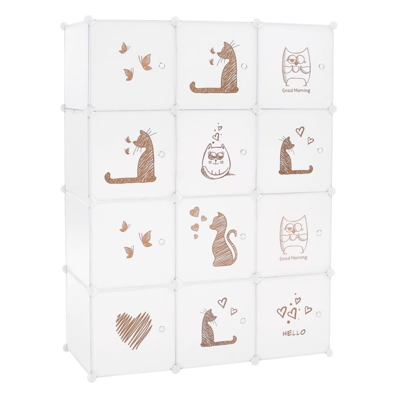 Detská modulárna skriňa, 107cm, biela, hnedý vzor, KITARO