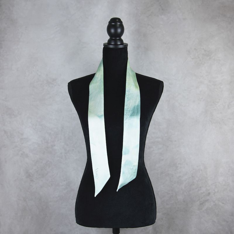 Luxusný hodváb typu crepe-satén je farbený 100 % prírodným pigmentom určeným priamo na hodváb, ktorý je dokonale zafixovaný vo vláknach. Ručné farbenie zaručuje jedinečnosť každej šatky. Okraje sú starostlivo prešité ručne, šatka vyžehlená a pripravená na okamžité nosenie alebo ako luxusný darček.