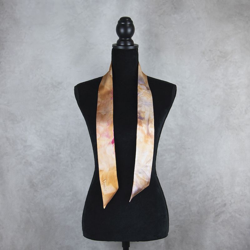 Luxusný hodváb typu crepe-satén je farbený 100 % prírodným pigmentom určeným priamo na hodváb, ktorý je dokonale zafixovaný vo vláknach. Ručné farbenie zaručuje jedinečnosť každej šatky. Okraje sú starostlivo prešité ručne, šatka vyžehlená a pripravená na okamžité nosenie alebo ako luxusný darček.