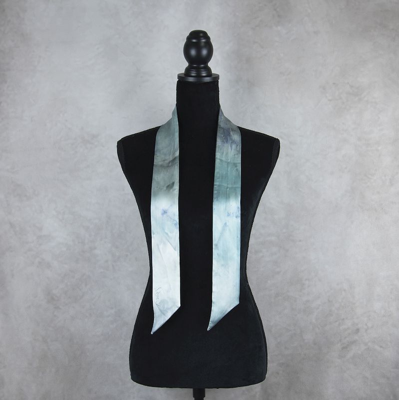 Luxusný hodváb typu crepe-satén je farbený 100 % prírodným pigmentom určeným priamo na hodváb, ktorý je dokonale zafixovaný vo vláknach. Ručné farbenie zaručuje jedinečnosť každej šatky. Okraje sú starostlivo prešité ručne, šatka vyžehlená a pripravená na okamžité nosenie alebo ako luxusný darček.