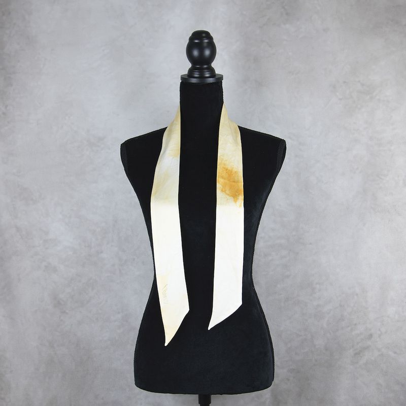 Luxusný hodváb typu crepe-satén je farbený 100 % prírodným pigmentom určeným priamo na hodváb, ktorý je dokonale zafixovaný vo vláknach. Ručné farbenie zaručuje jedinečnosť každej šatky. Okraje sú starostlivo prešité ručne, šatka vyžehlená a pripravená na okamžité nosenie alebo ako luxusný darček.