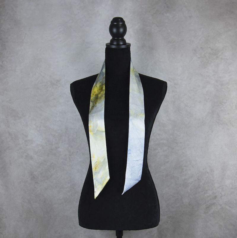 Vstúpte do sveta exkluzivity a farieb s limitovanou šatkou Twilly. Každý kus je jedinečný, vyrobený ručne zo 100 % hodvábu CREPE SATÉN a farbený prírodnými pigmentmi, ktoré garantujú intenzívne a žiarivé odtiene.