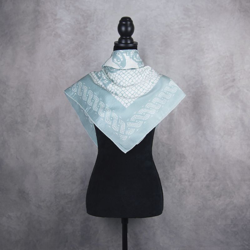 Exkluzívna hodvábna šatka vyrobená na Slovensku, ktorá kombinuje ľahký a priesvitný hodváb s originálnym motívom tyrkysovej medúzy. Táto šatka je živá, elegantná a vynikajúco sa hodí na kreatívne viazanie alebo ako štýlový doplnok k akémukoľvek outfitu.