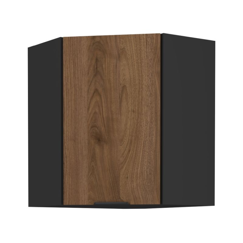 Horná skrinka rohová, 60cm, orech okapi, čierna, MENZO 60x60 GN-72 1F
