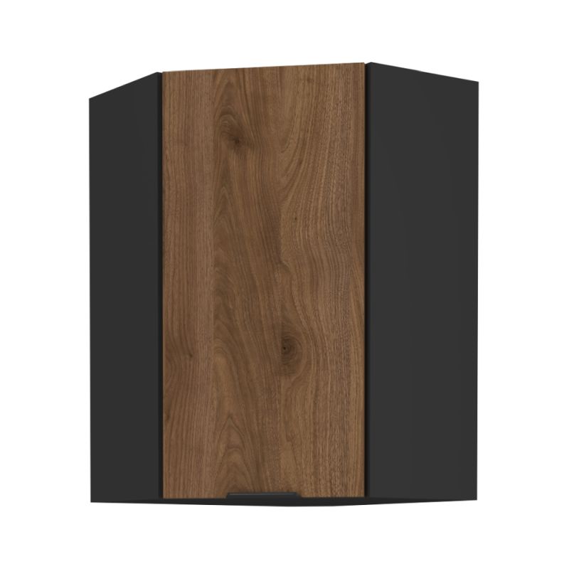 Horná skrinka rohová, 60cm, orech okapi, čierna, MENZO 60x60 GN-90 1F