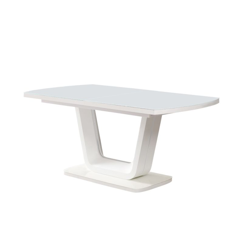 Jedálenský stôl, 160x90cm, rozkladací, sklo, biely lesk, OLAV