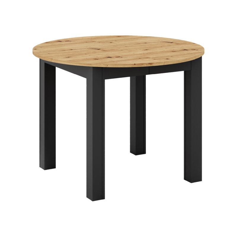 Jedálenský stôl, okrúhly, 103cm, rozkladací, DTD, dub artisan, čierny, HARRY1 - 2 pracovné dni142,00 €/ ks115,45 € bez DPH