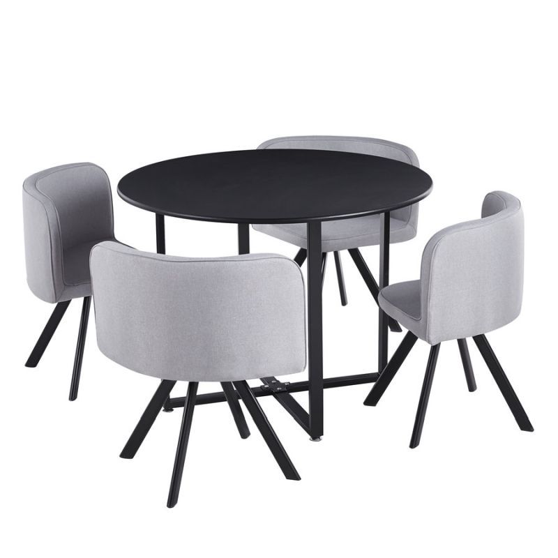 Jedálenský set 1+4, 100x100cm, MDF, čierny, látka svetlosivá, BEVAN NEW