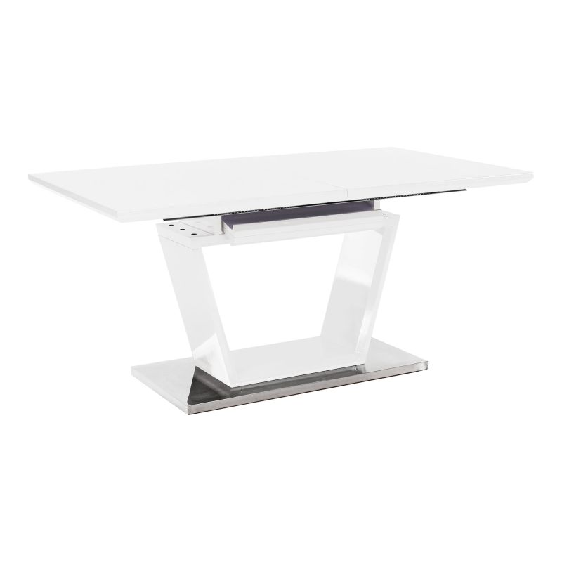 Luxusný dizajnový rozkladací jedálenský stôl s pevnou podstavou a vrchným plátom v prevedení biela HG