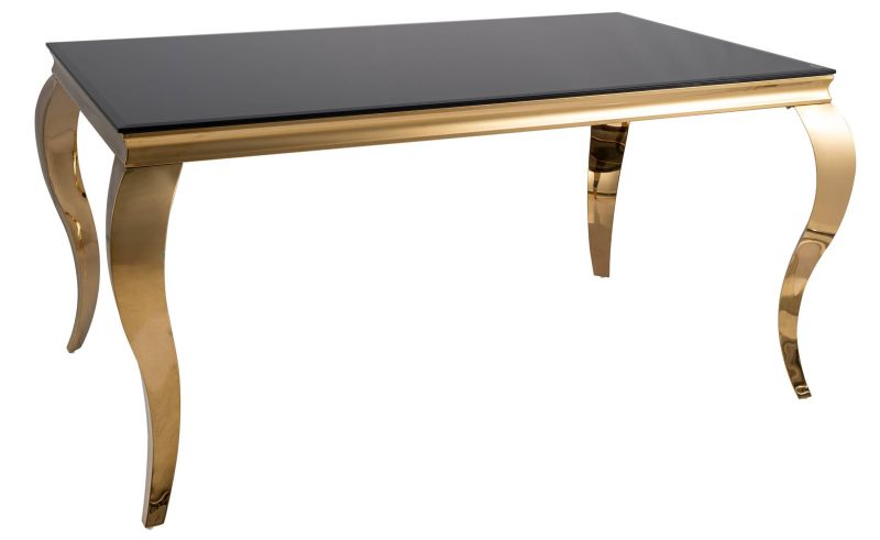 Jedálenský stôl, 150x90cm, sklo, čierny, zlatý, PRINCE GOLD 150