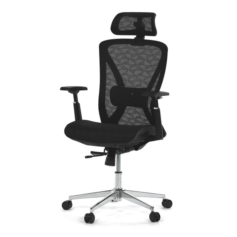 Pre maximálne pohodlie je stolička vybavená nastaviteľnou opierkou hlavy s 2D funkciou, ktorá poskytuje oporu krčnej chrbtici. Výškovo nastaviteľná kancelárska stolička umožňuje jednoduché prispôsobenie výšky sedu podľa individuálnych potrieb. 1D podrúčky s vertikálnym nastavením zabezpečujú komfortnú oporu rúk. Stabilný kovový kríž a kolieska vhodné na tvrdé povrchy garantujú spoľahlivosť a plynulý pohyb. Táto čierna kancelárska stolička je investíciou do pohodlia, estetiky a produktivity.