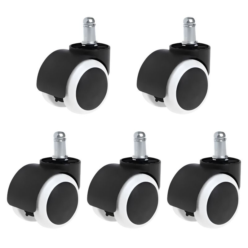 Balenie obsahuje 5 kusov z plastu v kombinácii čiernej a bielej farby, ktoré sa otáčajú o 360° a sú vhodné na tvrdé a mäkké podlahy