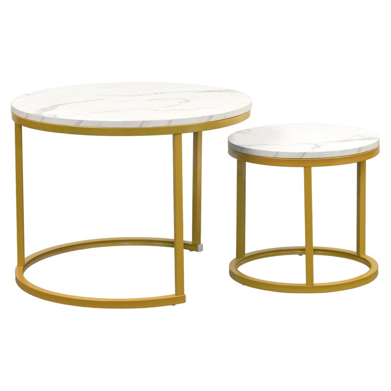 Konferenčné stolíky, set 2 ks, 60x60cm, zlatý, imitácia mramoru, DAMON