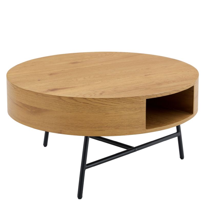 Vyrobený je z kombinácie fóliovanej MDF v odtieni dub a čiernej kovovej konštrukcie