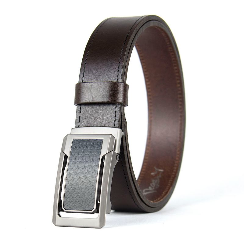 Bez dierok, bez posúvania, bez neustáleho nastavovania. Stačí zasunúť a pracka sa postará o pevné uchytenie. Opasok je vyrobený z pravej talianskej kože, ktorá je odolná a ideálna na každodenné nosenie. Moderný dizajn s kovovou prackou sa hodí k obleku aj k rifliam.