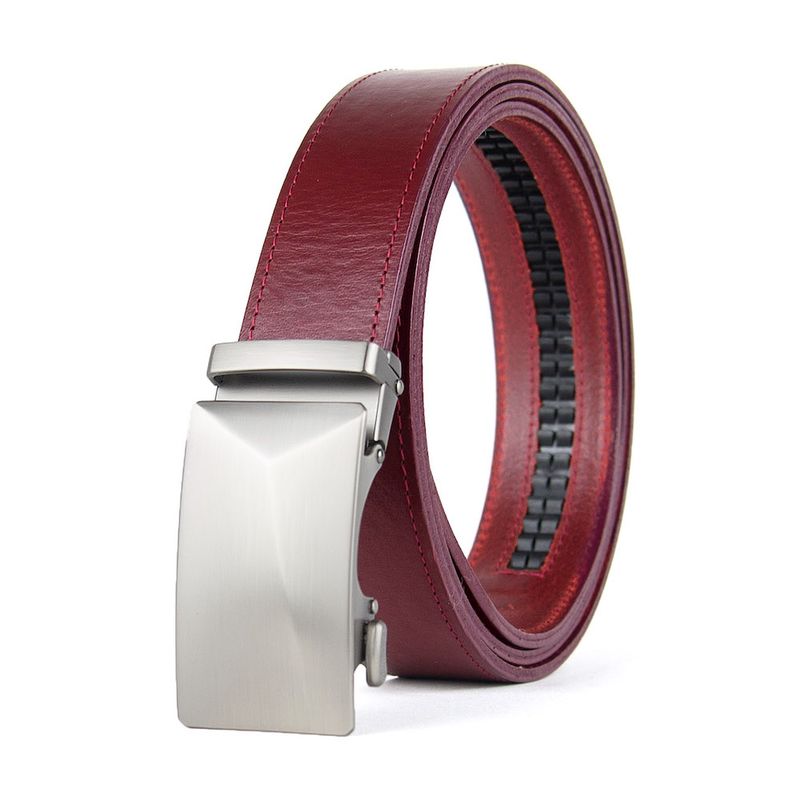 Kožený opasok NICKEL XYRON s automatickou prackou, Bordový