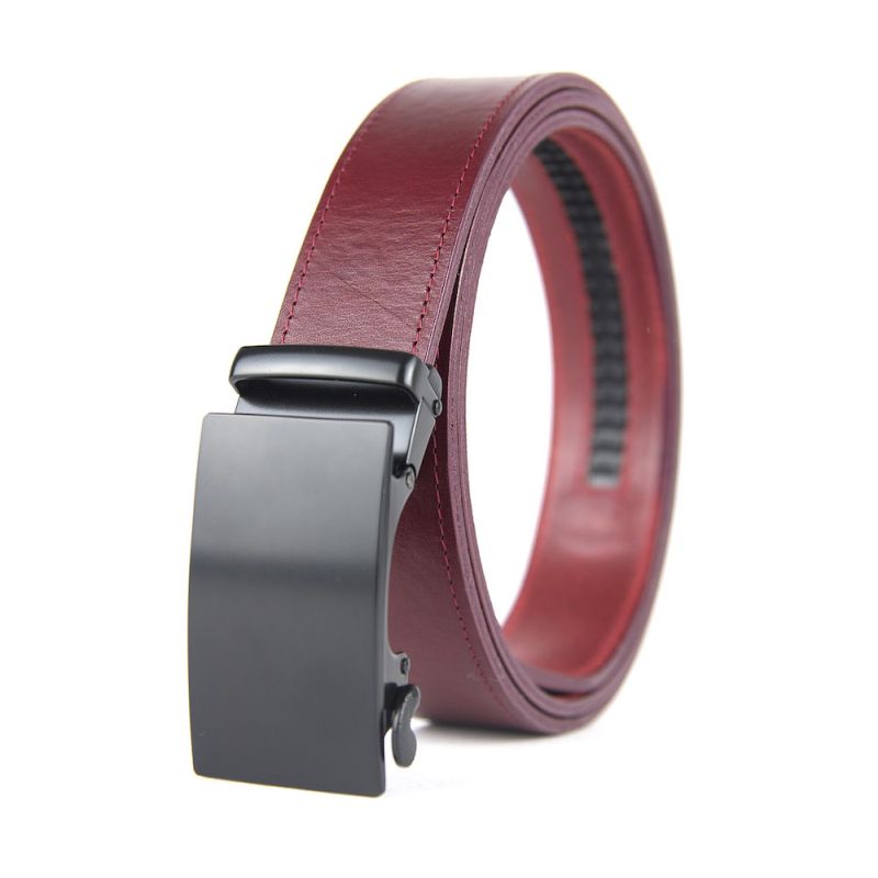 Kožený opasok s automatickou prackou CLEAR BLACK - Bordová