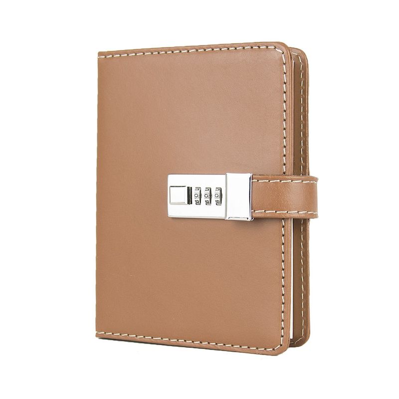 Kožený zápisník MIDDLE s číselným zámkom – svetlo hnedá farba