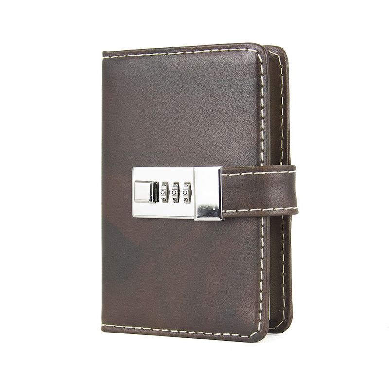 Kožený zápisník MINI s číselným zámkom – tmavo hnedá, ručne tieňovaný