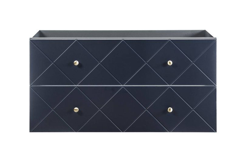 Originálne frézované čelá dopĺňa výrazný odtieň hlbokomodrej, inšpirovanej farbou mora. Ide o moderné poňatie glamour štýlu, ktoré v sebe spája luxus s trendovým dizajnom. Elegantný modrý dekor v kombinácii so zlatými úchytkami so saténovou povrchovou úpravou pôsobí výnimočne a vnesie do vašej kúpeľne šmrnc, noblesu a estetickú čistotu