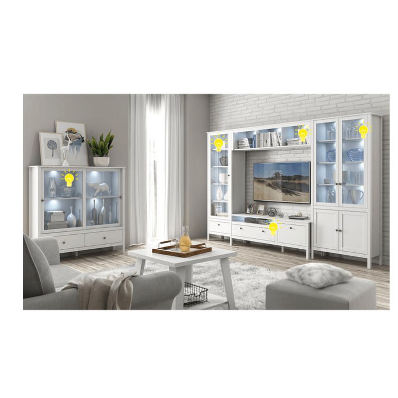 K vitríne 2W2S a vitríne 1W1S, nízkej vitríne KOVER 2D2W, regálu 1D1S VAIT ponúkame 4-bodové LED osvetlenie s bielym podfarbením
