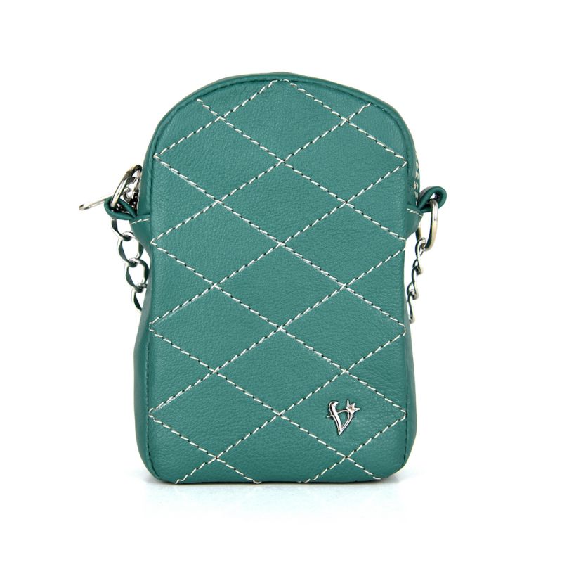 - Malá kožená kabelka na mobil v tmavo zelenej farbe