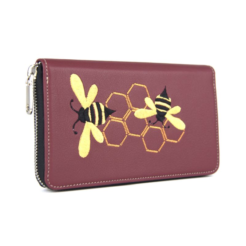- Módna dámska vyšívaná kožená peňaženka č.8606 s motívom Včeličiek, bordová farba