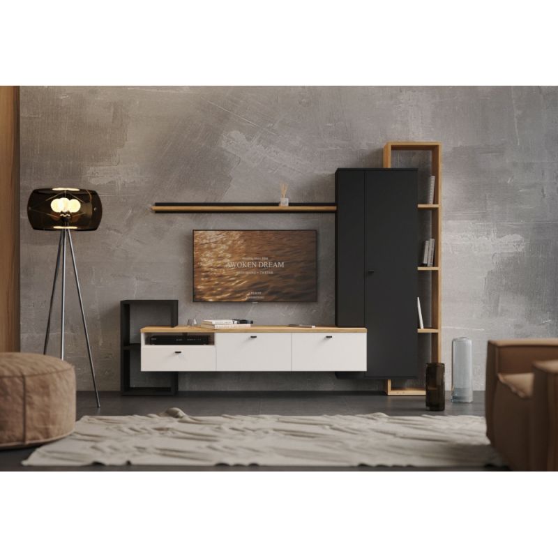 Dizajnová kombinácia čiernej, bielej a prírodného dekoru dub craft zlatý pôsobí štýlovo a zároveň harmonicky zapadne do akéhokoľvek interiéru