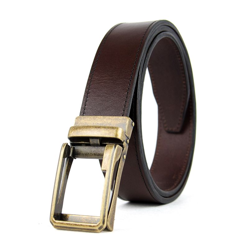 - Opasok z pravej kože s automatickou prackou ANTIQUE - Tmavo hnedá