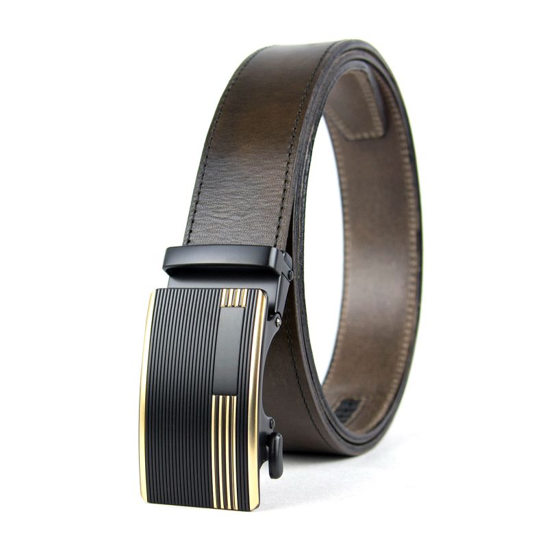 Luxusný kožený opasok s automatickou prackou, vyrobený z pravej talianskej kože. Elegantná olivová farba a nadčasový moderný dizajn pôsobia štýlovo, sofistikovane a veľmi vkusne. Tento opasok je ideálnym doplnkom k obleku aj k casual outfitom a zaručuje komfort a presné nastavenie počas celého dňa.