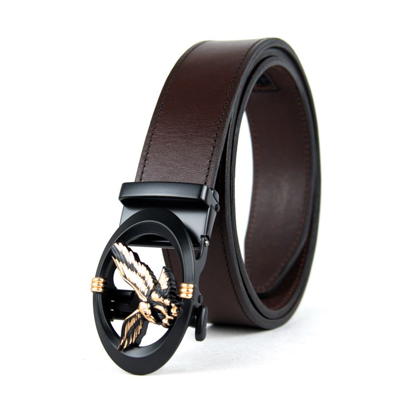 Opasok z pravej kože s automatickou prackou HAWK - Tmavo hnedá