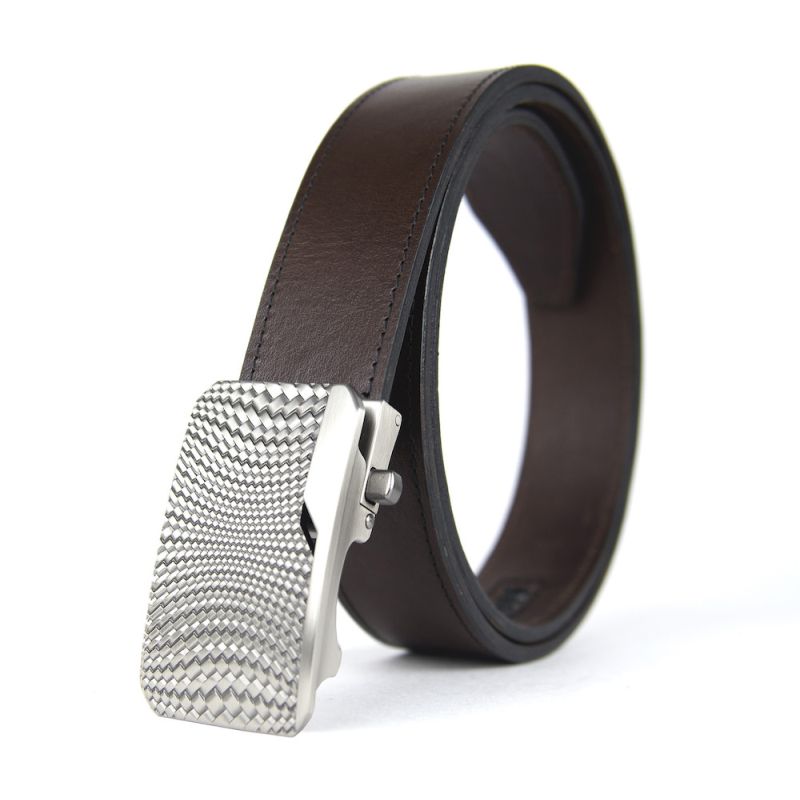 Opasok z pravej kože s automatickou prackou NICKEL KNITT - Tmavo hnedá