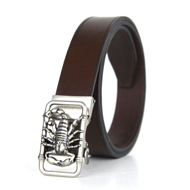- Opasok z pravej kože s automatickou prackou OLD SILVER SCORPION Tmavo hnedá