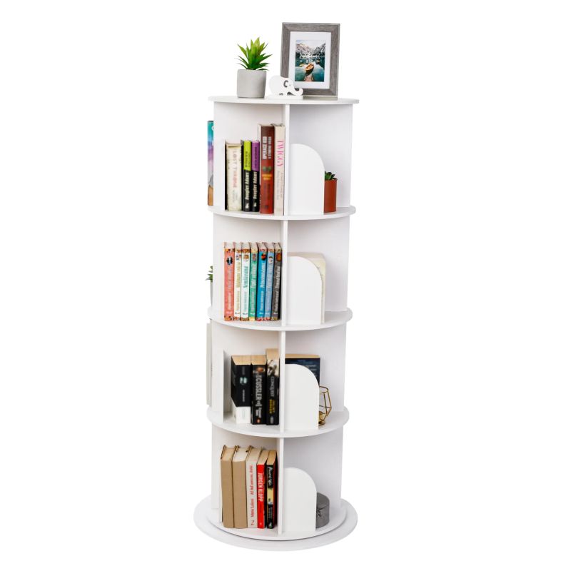 Regál je štvorposchodový, na každé poschodie vojde približne 20 kníh. Zadovážte si túto otočnú knižnicu, získate tak odkladací priestor pre cca 80 kníh