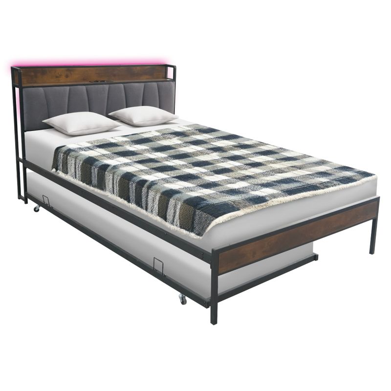 Manželská posteľ, 160x200, s roštom, prístelka, čierna, sivá, NORDO1 - 2 pracovné dni239,00 €/ ks194,31 € bez DPH
