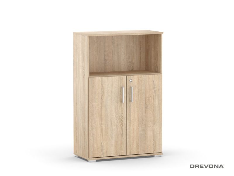 Kombinovaná skrinka do kancelárie s dvomi policami je vyrobená z kvalitnej laminovanej drevotrieskovej dosky.