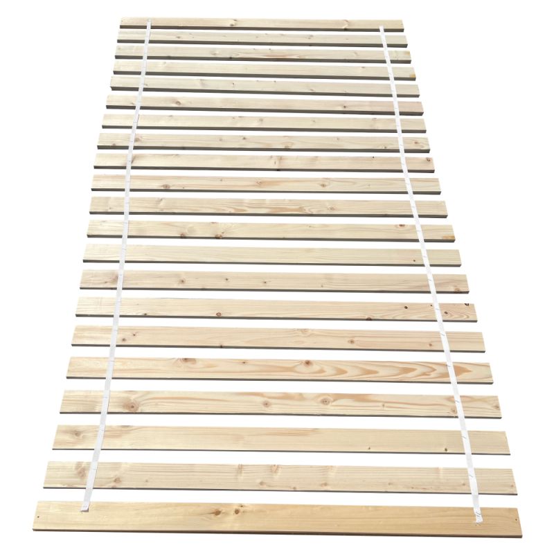 Rolovaný rošt PLUMA tvoria laty vyrobené z masívneho smrekového dreva spojené čalúnickou páskou
