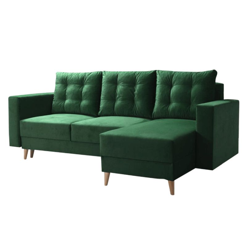 - Rozkladacia sedacia súprava, látka zelená, pravá, BLEKY ROH