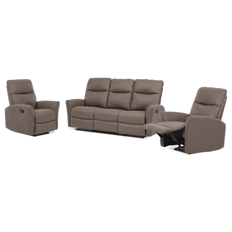 Látkové čalúnenie s vintage efektom je nielen vizuálne atraktívne, ale aj príjemné na dotyk a praktické na údržbu. Sedacia súprava pozostáva z rozkladacej trojsedačky a dvoch kresiel s manuálnym polohovaním, vďaka ktorým si jednoducho prispôsobíte komfort podľa vlastných potrieb.