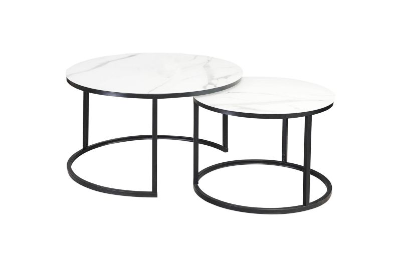Set konferenčných stolíkov, 80x80cm, čierny mat, biely efekt mramoru, ATLANTA C