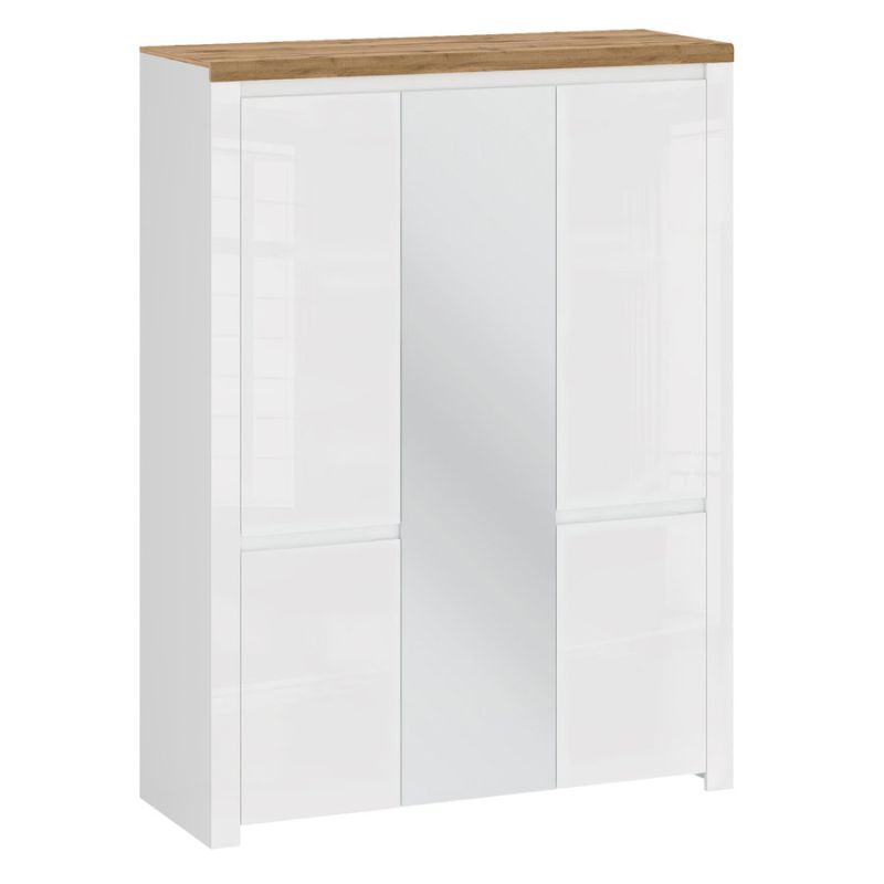 Skriňa, 151cm, kombinovaná, biely lesk, dub wotan, zrkadlo, VILGO 5D1 - 3 pracovné dni649,00 €/ ks527,64 € bez DPH
